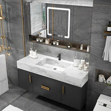 几里 岩板浴室柜实木卫生间洗手盆洗脸盆台面柜组合洗漱池台盆卫浴套装【接受多种定制】 单盆 110cm 智能镜柜款
