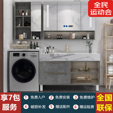 【送货+安装】浴美居洗衣机柜子浴室柜组合卫浴洗衣台洗衣池洗衣槽卫生间一体滚筒洗衣机伴侣阳台洗衣柜定制 水泥灰+智能镜柜+边柜款 140cm