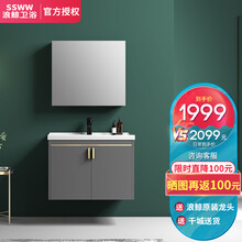 SSWW浪鲸卫浴套装浴室柜组合现代简约洗漱台洗脸盆洗手盆挂墙式 70cm配普通镜柜 含龙头套装(深空灰)