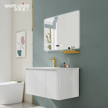 白色恋人岩板浴室柜组合洗手盆柜组合洗手台卫生间洗脸盆柜组合洗脸台卫浴柜 定制-80CM-智能镜子