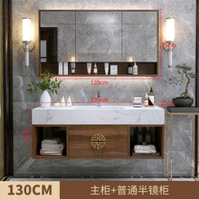 迎客吉(YINGKEJI)轻奢新中式实木智能浴室柜组合卫生间现代洗手池洗脸盆柜洗漱台橡木卫浴柜 120CM 普通镜柜