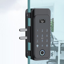 百汇龙免开孔商铺锁玻璃门指纹锁双门室外防水办公室智能电子密码锁门禁锁 免开孔通用