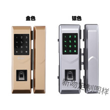 办公室玻璃门指纹锁推拉单双门密码门锁免开孔电子门禁工程定制 香槟金双开门 【指纹+密码+刷卡】