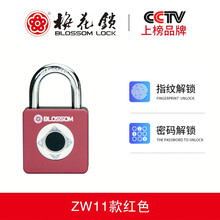 梅花锁新款智能电子指纹挂锁密码锁旅行箱包健身房柜子学生小锁头 ZW11红色