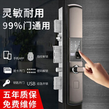 自动滑盖指纹密码锁防盗门家用指纹锁大门玻璃门锁智能电子锁刷卡 土豪金+手动滑盖+半导体+6种开锁