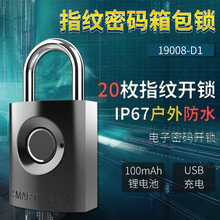 汐一 中号智能指纹挂锁健身房学生宿舍柜子家用旅行箱包电子锁防水锁头 D1灰色/开锁:20指纹+电子密码