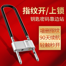 爱彼客 u型锁玻璃门锁指纹 u型智能指纹办公室密码锁商铺锁推拉门双门店面锁具锁头小巧421厘米挂锁 黑色