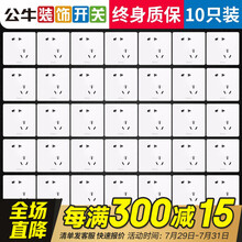 公牛开关插座面板套餐10a五孔三孔墙壁插座86型墙开暗装电源5孔网络16A空调G12白色 斜五孔10只(优先发货)
