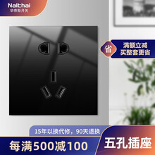 华帝斯(Nalthai)开关插座86型钢化玻璃面板墙壁暗装任意点开关 晶点黑色系列 五孔插座(真正玻璃面板)