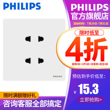 飞利浦PHILIPS开关插座昕绎四孔插座二二插座四位插座86型带保护门开关墙壁开关飞利浦开关四孔插座 昕绎白色四孔插座
