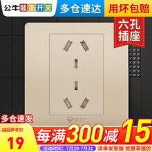 公牛开关插座86型家用 墙壁10a六孔插 座三三插香槟金面板G07 六孔