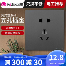 飞雕开关插座86型大板荧光灰暗装墙壁usb五孔插座带开关16a空调/网线网络面板 雕琢灰系列 五孔插座