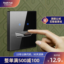 华帝斯(Nalthai)开关插座86型钢化玻璃面板家用暗装拨杆自动复位按键墙壁D95黑色 一开单控带LED指示灯(真正玻璃面板)
