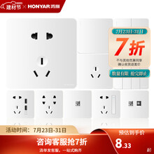 鸿雁开关插座86型五孔面板多孔家用暗装墙壁开关X5系列白色 正五孔插座