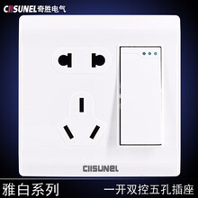奇胜开关插座面板 一开五孔双控双联10A 二三插带开关双控电源插座86型暗装雅白