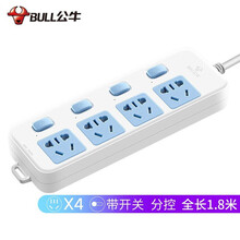 公牛插座4位带儿童保护门独立开关电源分控新国标插座/插线板/插排/排插/接线板/拖线板 GN-315(1.8m)