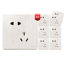 德力西(DELIXI)开关插座面板 CD880系列 10A错位五孔插座8只装套餐 拉丝珠光白