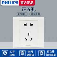 飞利浦开关插座墙壁面板P5系列白色错位斜五孔10A电源二三插座86型暗装双USB插网络电视插空调 五孔插座