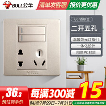 公牛开关插座面板二开双控五孔插座86型暗装双联双开二三插10a墙壁电源插座5孔G07面板香槟金