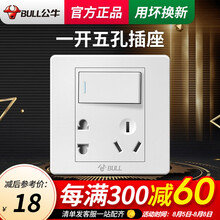公牛(BULL)开关插座面板插座86型G07系列 家用暗装墙壁插座一开双控五孔经典白