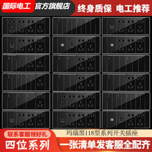 国际电工 118型墙壁开关插座面板四位二十孔电源插座20孔十二孔四插大间距 P618黑色四位系列 四位二十孔
