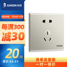 俊朗(JUNON)开关插座面板五孔插座86型开关插座暗装三孔空调插座16a墙壁开关天悦土豪金二三插座 五孔插座