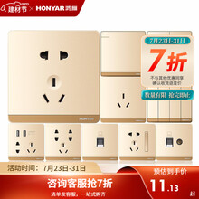鸿雁HONYAR开关插座86型暗装五孔插座USB插座10A三孔16A一二三四开单双控Q86香槟金 正五孔单只装