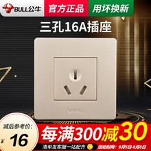 公牛(BULL)开关插座面板16A三孔插座86型三孔16A空调热水器家用暗装插座G07系列香槟金