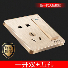 深派S2墙壁电源开关二三插座86型面板错位5孔浴室厨房防水墙面墙体墙上装修家用套餐 拉丝香槟金色 一开五孔双控【带开关插座】