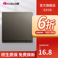 飞雕(FEIDIAO)开关插座86型暗装开关5孔电源二三插面板 品意灰 三开双控