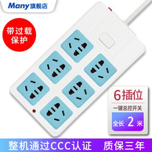 玛尼电器(many )排插带开关过载漏电保护插座8位10位长线拖线板2米/3米/5m米插排插板 【过载保护】六位总控2米 406
