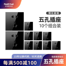 华帝斯(Nalthai)开关插座86型钢化玻璃面板墙壁暗装五孔插座二三插大面板插座晶点黑色 10只装 五孔十只装