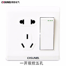 奇胜开关插座面板一开五孔双控双联10A二三插带开关双控电源插座86型暗装雅白CIISUNEL