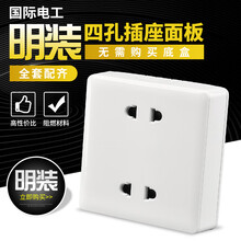 明装四孔插座86二二插4孔家用开关插座面板充电桩二孔 4孔明装