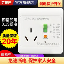 TEP国际电工 三孔16A插座2P空气开关带漏电保护器断路器家用电机空调过载开关插座白 16A三孔漏电保护插座