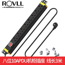 罗孚ROVLL PDU机柜插座 工业用电源插线板 防雷插座6位8位10A/16A 工业大功率排插 8位10A开关工业用插座 3米