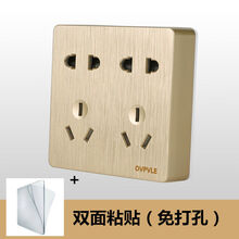 明装墙壁开关插座面板金色二十七孔插座27孔20孔电源插座明线15孔 明装金色10孔+双面粘贴(免打孔)