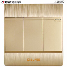 奇胜开关插座面板三开双控开关三位三联双开墙壁插座86型香槟金色拉丝CIISUNEL