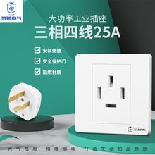 赞牌家用86型开关插座380v伏中央空调三相四线25a墙壁电源暗装插座工业大功率四孔插座4扁脚插头 25a三相四线插座带插头