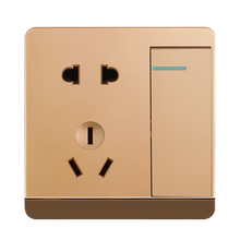 邓禄普开关插座86型家用暗装一开五孔单控双控三孔16A插座D60香槟金 一开五孔双控
