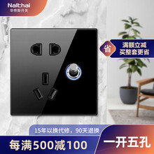 华帝斯(Nalthai)开关插座86型玻璃面板暗装黑色LED拨杆开关家用酒店个性化开关插座 一开五孔插座(真玻璃面板)
