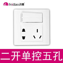 飞雕二开五孔二位双控带双插座86型双开关带五孔面板两开5孔暗装 明装可选 二开单控五孔(86暗装白色)