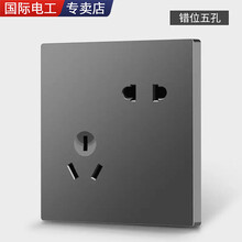 国际电工 开关插座86型家用暗装大板磨砂灰双控一开带5五孔USB多孔插座面板 错位五孔
