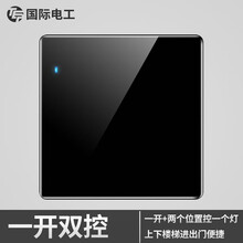 国际电工 开关插座86型钢化玻璃大面板暗装带荧光翘板式五孔多控墙壁网络插座面板钻石黑色 一开双控(真钢化玻璃面板)