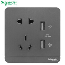 施耐德开关插座 面板 墙壁电源插座 家用86型 明装/暗装绎尚系列 五孔带两孔2.1A USB插座 荧光灰色