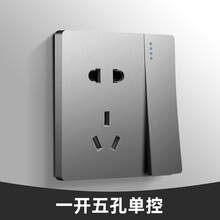 国际电工86型家用灰色开关插座面板 暗装一开带5五孔USB多孔电源 特价一开五孔单控