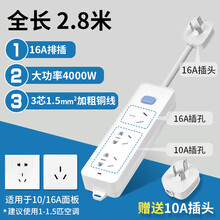 吉丁 空调插座延长线16安插排大功率电热毯专用插线板10a转16a插板4000w热水器排插 16A插排-3插位-2.8米带开关【16A插头】