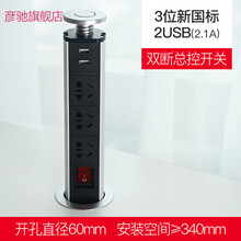 厨房岛台插座办公桌洞usb充电台面橱柜嵌入式升降桌面插座带开关 【60mm】三位+2usb+双断开关
