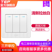 TEP 开关插座面板 家用三开单控电灯开关 墙壁按钮三位单联 L6拉丝白系列