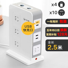 吉顺 插线板立式排插座一转多智能转换器USB快充电源拖线板塔式多孔办公家用开关接线板插头新国标 升级版快充全白色4USB+10孔 2.5米